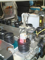 Automated assembly equipment that makes precision slits in molded rubber prior to assembling it in a canister.
