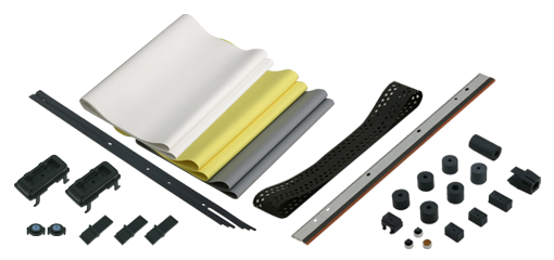複写機・プリンターのゴム部品で、かねてより豊富な実績を誇る興国インテックでは、得意の配合技術で、高耐久性への要求に対応。またハイスピード下で従来の認識とは全く異なる挙動を示す記録紙については、新たな転写システムへの模索がなされていました。当社では、半導電域において安定した導電性を示す「転写ベルト」を開発。カラー化においても、従来とは異なる新たな製法による「中間転写ベルト」を開発。これら新規開発ゴム部品が、いま最先端の複写機・プリンターで活躍しています。