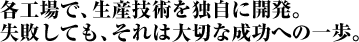 技術研究により生まれたゴム材料の新規開発から製品化への道筋は、各工場における生産技術の確立により完成します。